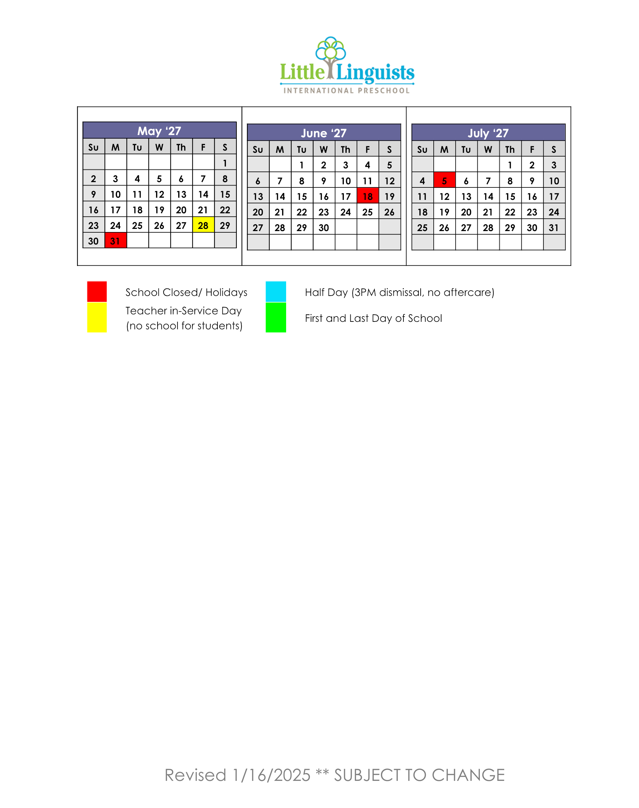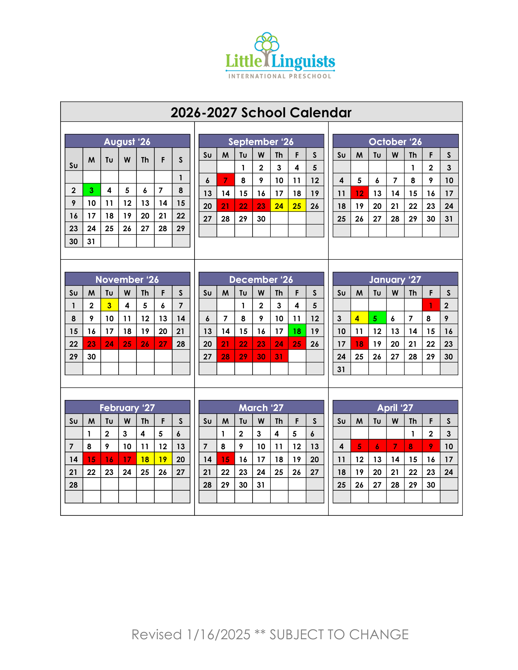 Navigation Our Story Our Story Programs Programs Apply Now Apply Now Tuition & Fees Gallery Gallery Parents Parents 2025-2026 School Calendar 2026-2027 School Calendar Contact Us Contact Us